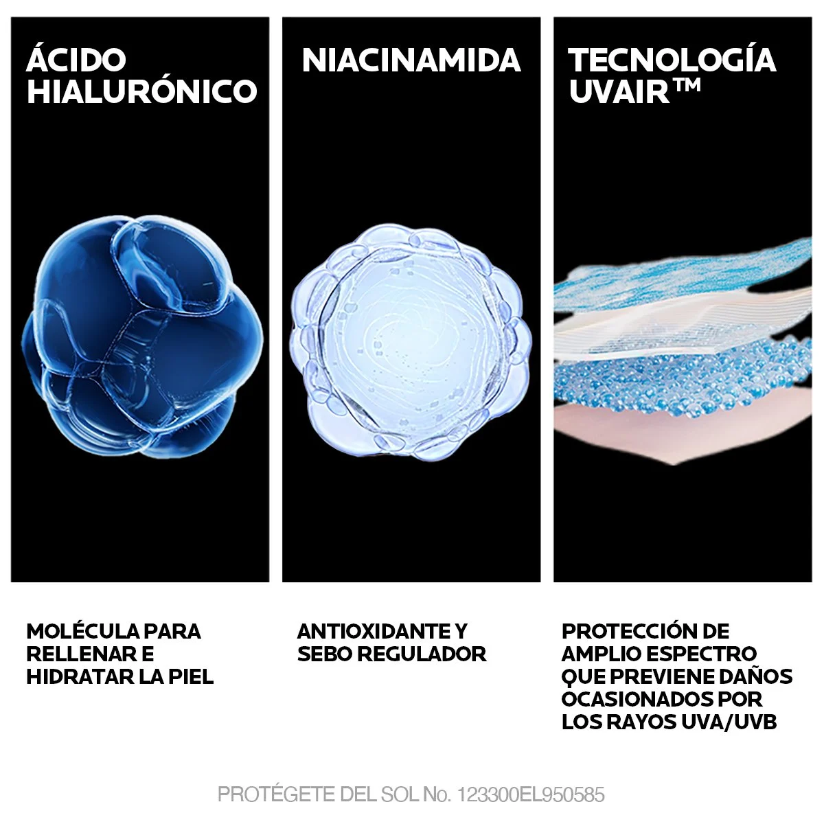 Niacinamida (Vitamina B3): Este potente ingrediente multifuncional actúa como antioxidante, regula la producción de sebo, calma la piel sensible y ayuda a atenuar visiblemente la decoloración y las manchas oscuras. Fortalece la barrera cutánea mientras controla el brillo hasta por 16 horas.