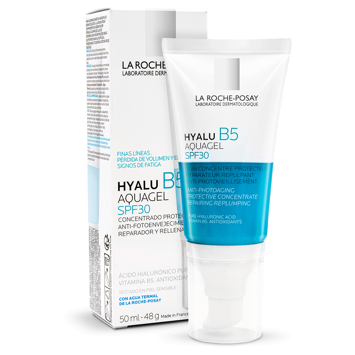 HYALU B5 AQUAGEL SPF30 | Aquagel SPF30 concentrado para reparar y rellenar | LA ROCHE POSAI es un concentrado dermatológico antiedad de textura gel que combina hidratación profunda, reparación cutánea y protección solar de amplio espectro en un solo producto. Su fórmula innovadora con ácido hialurónico puro y vitamina B5 rellena las arrugas desde el interior mientras protege tu piel contra la radiación UV y la polución diaria.